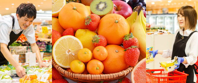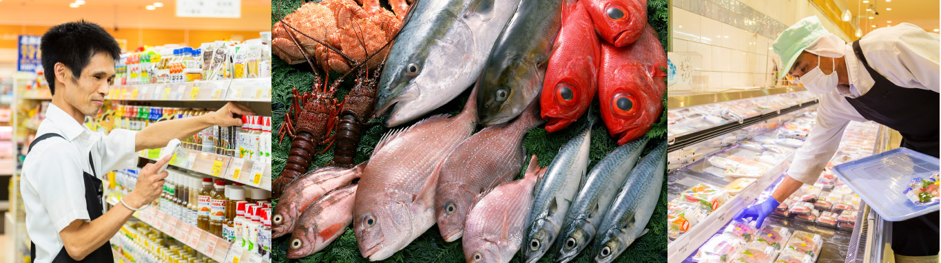生鮮三品(鮮魚、精肉、青果)、日配品(乳製品、大豆製品、冷蔵・冷凍食品、パン、生麺、練り物などの食品)、グロサリー(調味料、乾物、菓子、レトルト製品、缶詰などの一般食品や日用雑貨)の販売。惣菜の調理・販売。
